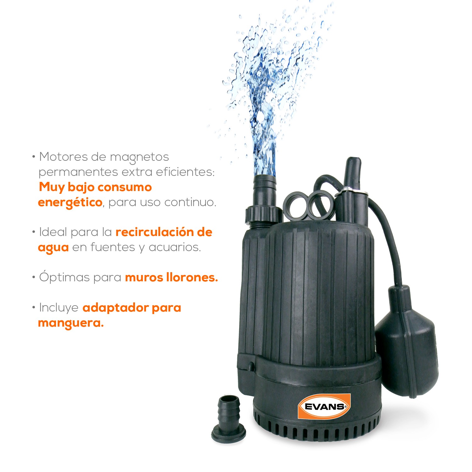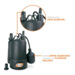 - Descripción: Bomba para fuentes con flotador y motor 1/6 Hp y descarga de 1″.